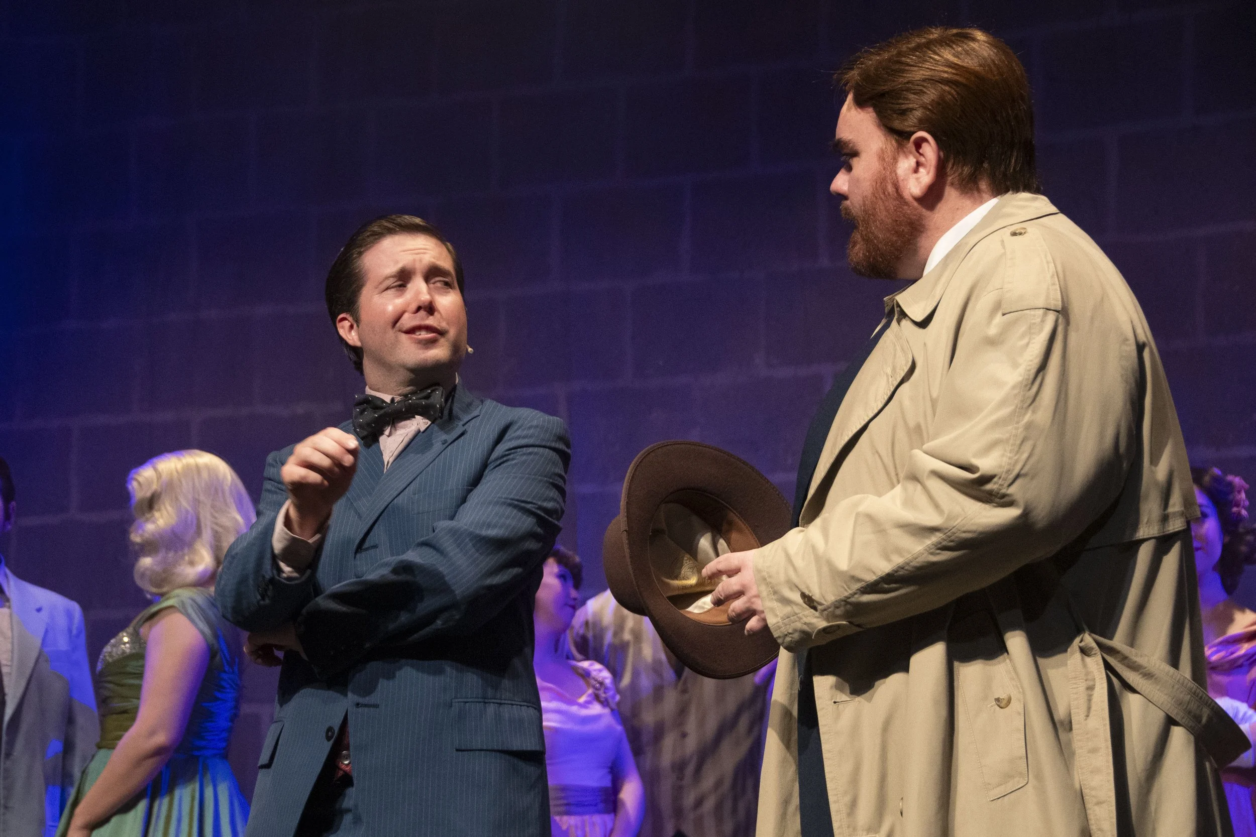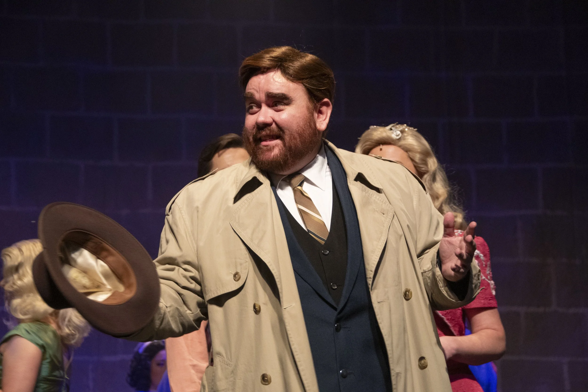 The leading actors are very well cast and rise to the comic and musical challenges of each role. A superb performance by Miranda Selwood (Carmen Bernstein), who plays the Producer/stage ‘mom’/cuckolded wife with style and sass, including the enjoyable ‘It’s A Business.’ Natalie Lennox (Georgia Hendricks) is a very believable songwriter turned leading lady, who is persuaded to take on the leading role in the show-within-the-show, and Daisy Thwaites (Nicki Harris) masters the art of being a rather naïve aspiring star and love interest for the starstruck detective.