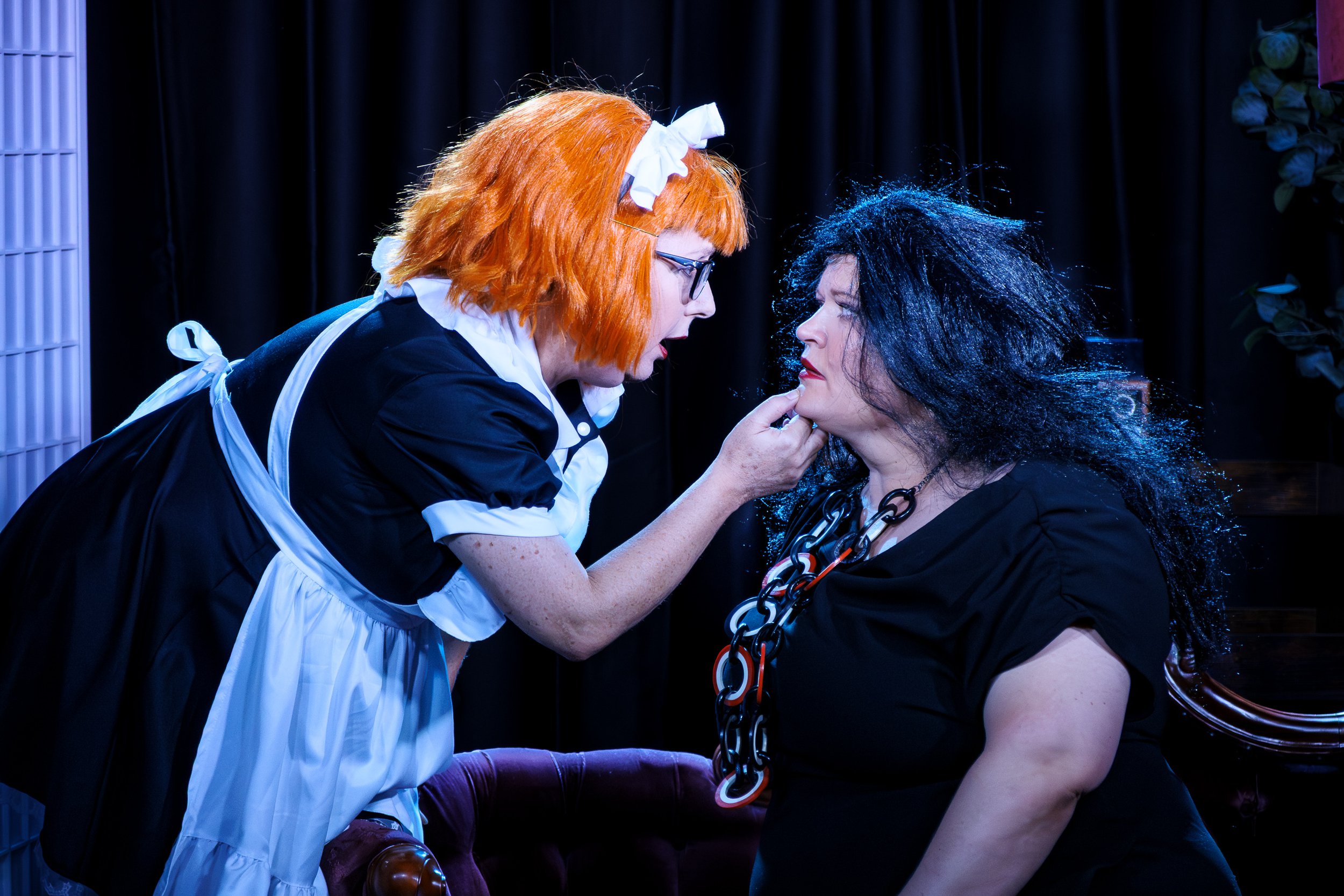 Picture (L to R): Susan O’Toole Cridland (Bootsie Carp) and Izabela Wasilewska (Angela Arden). Credit: Creative Futures Photography.