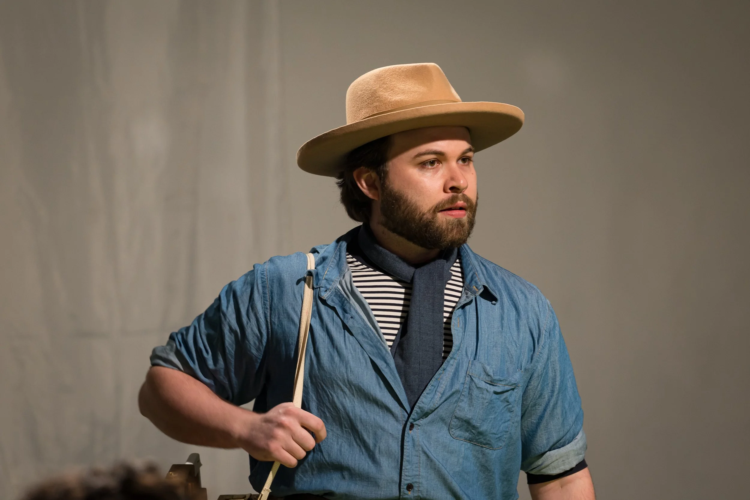 And don’t worry about a headline that refers to the show as a ‘staged reading.’ Yes, the two actors have their copies of the script to hand, but the paperwork is there as an occasional prompt, the costumes are well-chosen, and the backdrop and props all help to create an intimate and compelling show. Primitives is definitely more a preview than mere staged reading.